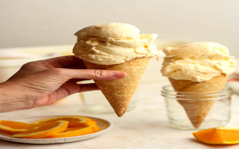 Pour the chilled mixture into an ice cream maker and freeze according to the manufacturer’s instructions. Once frozen, transfer the custard to a pastry bag fitted with a large star tip and pipe into serving cups for a decorative finish.